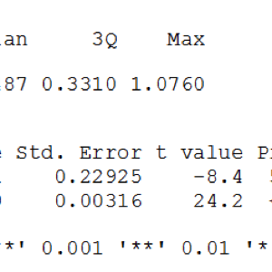 Таким образом, порог вхождения в программу может показаться пользователям, не сталкивающимся ранее с программированием, достаточно высоким. С другой стороны, команды, предназначенные для вызова базовых методов описательной статистики и статистических выводов, достаточно просты, а соответствующие результаты лаконичны. Рассмотрим пример использование линейной регрессии . Строка с соответствующим кодом будет выглядеть следующим образом: