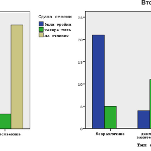The differences in the form of distribution are obvious. Apparently, it is much easier to study at the first department than at the second. This, in particular, is indicated by the number of students who passed their exams with excellent marks.